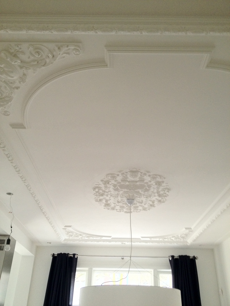 Bij plafondafwerking kunt u aan verschillende dingen denken. Zo is er het schuurplafond, het schuurplafond kenmerkt zich door de draaiingen die zich tekenen op het plafond, ook wel vlammen genoemd. Schuurwerk heeft als voordeel dat het egaal wit opdroogt en dus niet meer geschilderd dient te worden. Ook kunt u kiezen voor de gladde afwerking (sausklaar). Deze trend geeft een gladde en egale afwerking. Als u voor gladde afwerking kiest dient het plafond nog wel geschilderd te worden als eindafwerking. Als laatste is het spack plafond ook nog een mogelijkheid. Dit is een afwerking waarbij pleister onder hoge druk op het plafond word gespoten. De pleister word verneveld en hiermee kan een grove of fijne textuur behaald worden.
